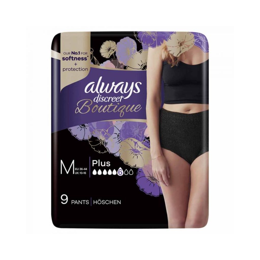 Always Discreet Boutique Incontinence Pants have a super absorbent core that quickly turns liquid to gel for incredible protection. Neutralises odours instantly and continuously and features a light scent for additional freshness.