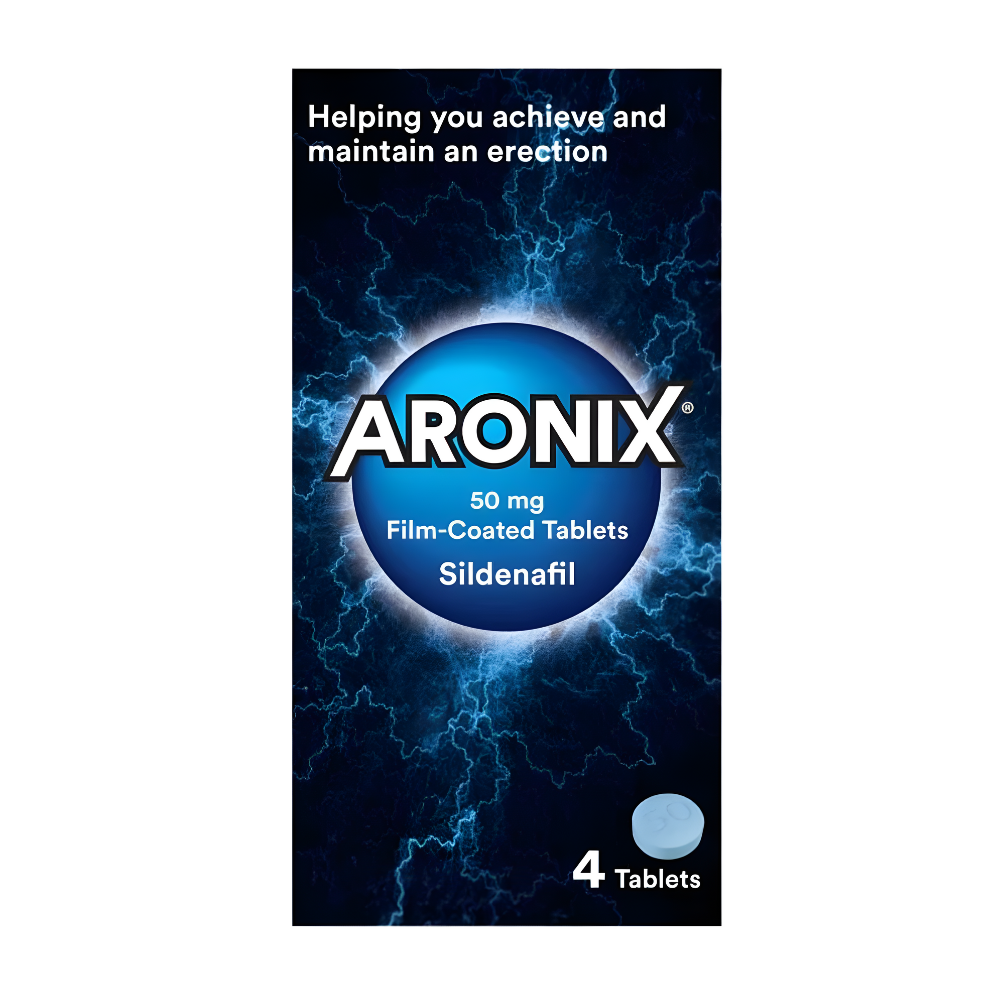 Aronix tablets contain 50mg of the active ingredient sildenafil, which is a type of medication called a phosphodiesterase type 5 (PDE5) inhibitor. It works by dilating the blood vessels in your penis, making it easier for blood to flow into the area, helping you to get an erection when you’re aroused.