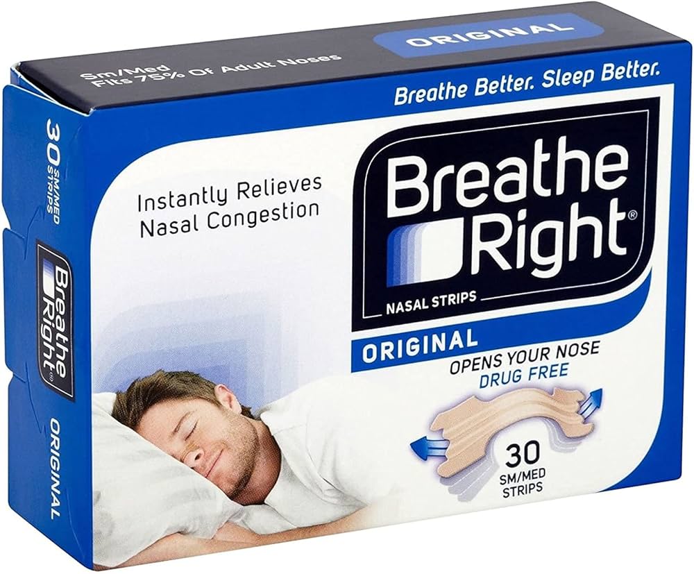 Breathe Right nasal strips are a flexible band which sticks to the skin of your nose. During the night, they try to straighten back into their original position, which lifts the nose, opening the nasal passages as it does and making it easier for you to breathe.