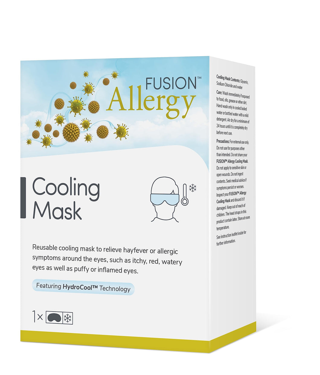 Fusion Allergy Cooling Eye Mask helps to relieve allergic symptoms such as itchy, red, watery eyes and puffy or inflamed eyes. The mask is both washable and reusable, along with an adjustable strap and soft touch backing to ensure optimum comfort.
